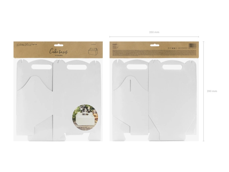 - Ozdobne pudełka na ciasto z papieru w kolorze białym, set zawiera 10 sztuk, wymiary pudełka po złożeniu ok. 19x14x9 cm. (1 op. / 10 szt.)