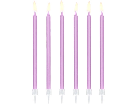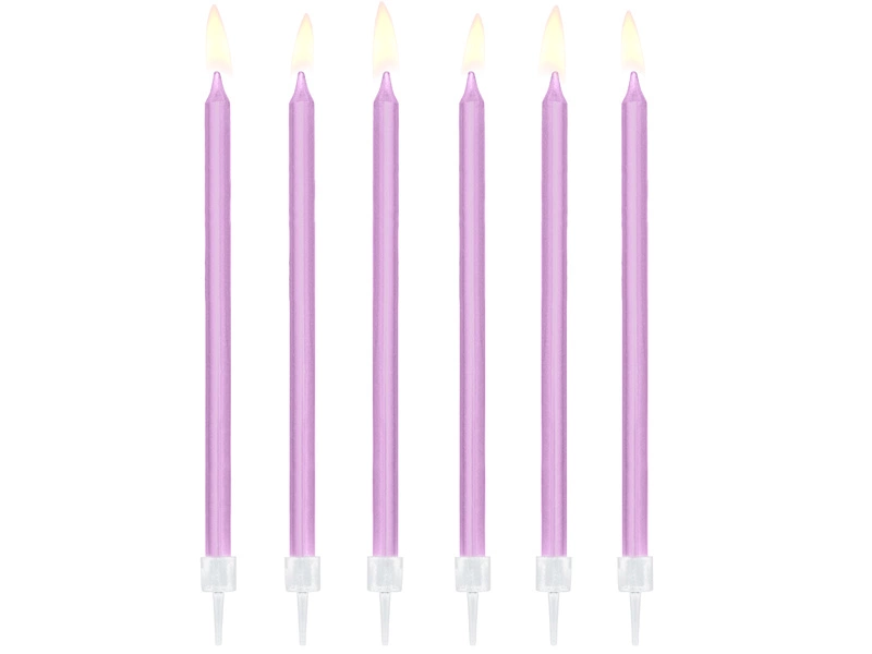 - Świeczki urodzinowe gładkie w kolorze jasnoliliowym, wysokość ok. 14 cm. Zestaw zawiera 12 świeczek i podstawek. (1 op. / 12 szt.)