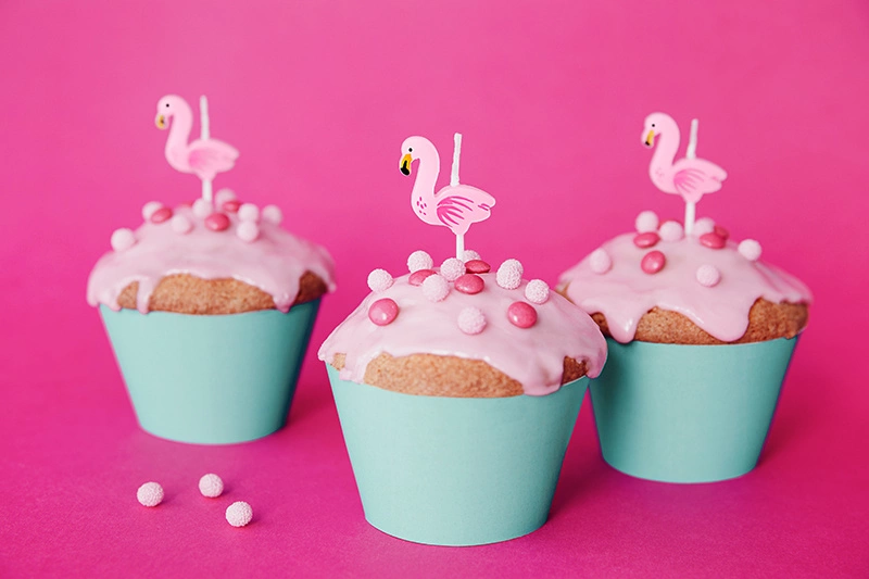 Pro Tip: Aby uzyskać jeszcze bardziej egzotyczny efekt, połącz świeczki flamingi z dekoracjami w stylu tropikalnym, takimi jak liście palmowe, ananasy i kwiaty hibiskusa.