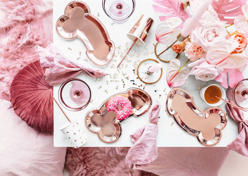 Chcesz dodać odrobinę humoru i elegancji do swojego wieczoru panieńskiego? Nasze talerzyki "Same Penis Forever" w kolorze różowego złota są idealnym wyborem! Te wyjątkowe talerzyki z pewnością przyciągną uwagę i wywołają uśmiech na twarzach gości. Doskonale sprawdzą się na wieczorach panieńskich, urodzinach i innych imprezach tematycznych.