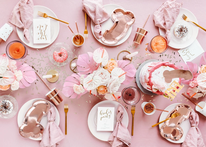 - Aby dodać jeszcze więcej blasku, użyj metalizowanych sztućców i serwetek w kolorze różowego złota.