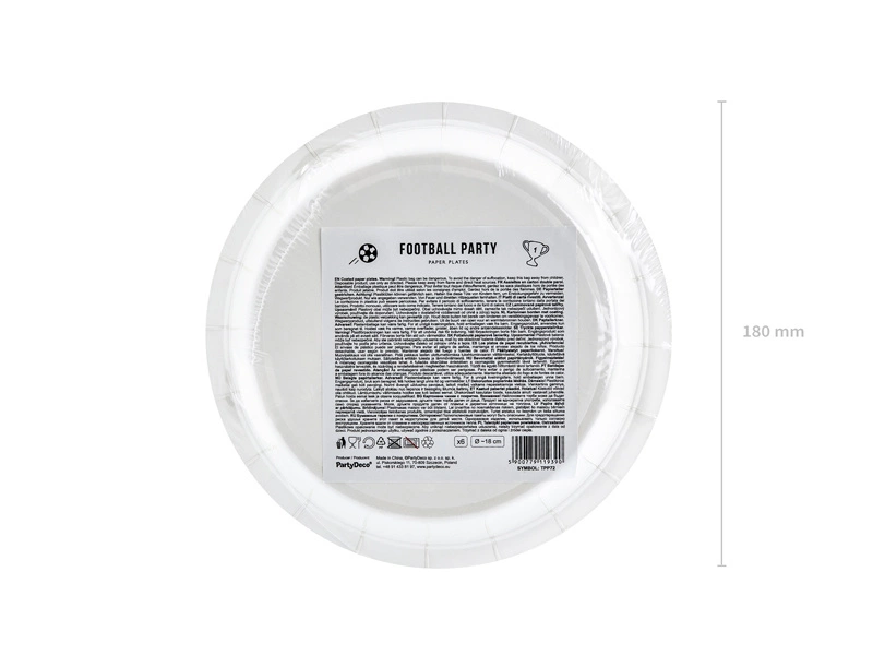- Talerzyki papierowe Piłka z matowym nadrukiem, średnica ok. 18 cm. (1 op. / 6 szt.)