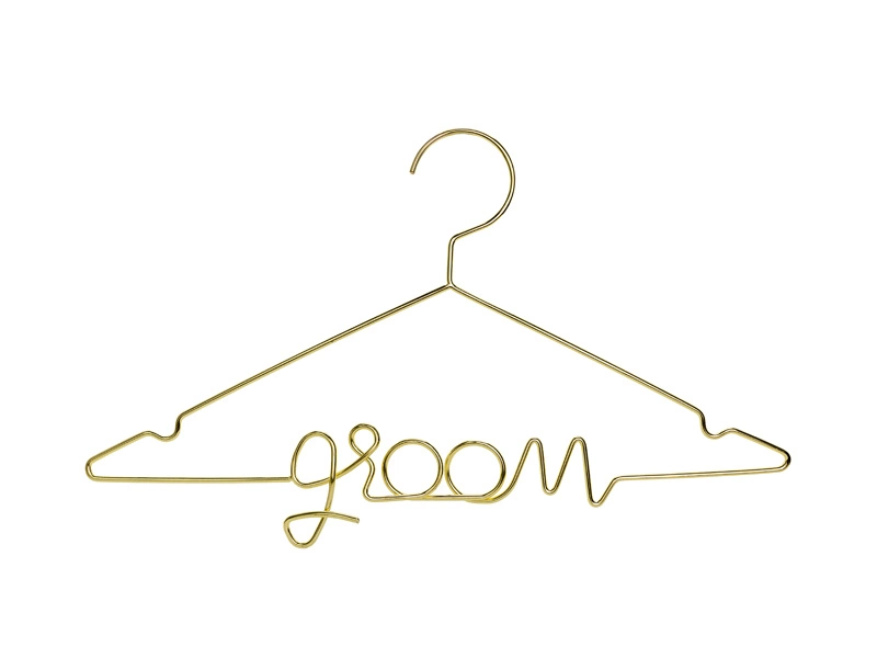 Wprowadź odrobinę luksusu i wyjątkowego stylu do swojego ślubu dzięki naszemu metalowemu wieszakowi Groom w kolorze złotym. Ten elegancki wieszak, idealny do zawieszenia garnituru Pana Młodego, nie tylko spełnia funkcję praktyczną, ale również stanowi piękny element dekoracyjny, który doda blasku każdemu zdjęciu z przygotowań do ślubu.