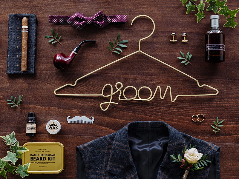 - Użyj wieszaka do zawieszenia garnituru Pana Młodego na widocznym miejscu, aby dodać elegancji do zdjęć z przygotowań.