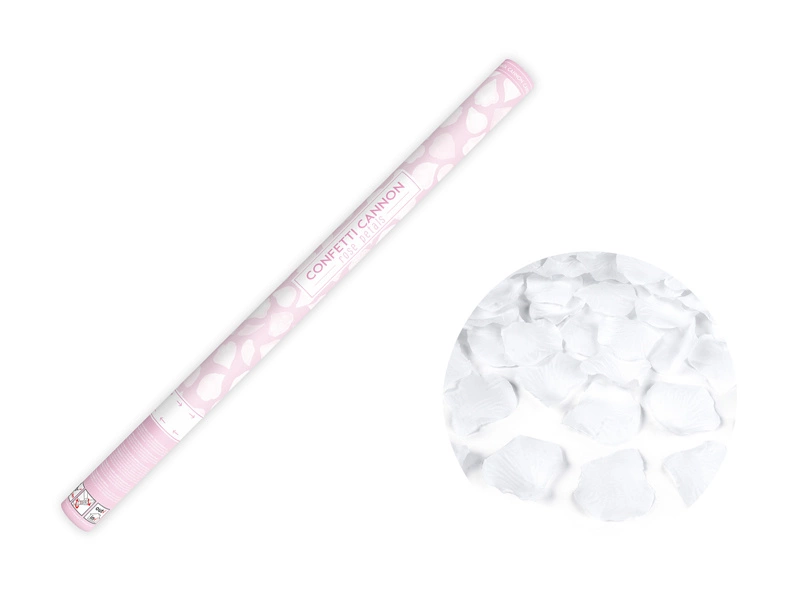 - Tuba strzelająca sztucznymi płatkami róż w kolorze białym, długość 80 centymetrów.