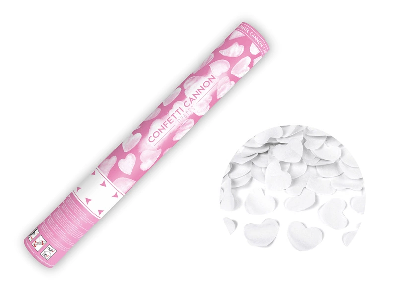- Tuba strzelająca bibułowymi sercami w kolorze białym, długość 40 centymetrów.
