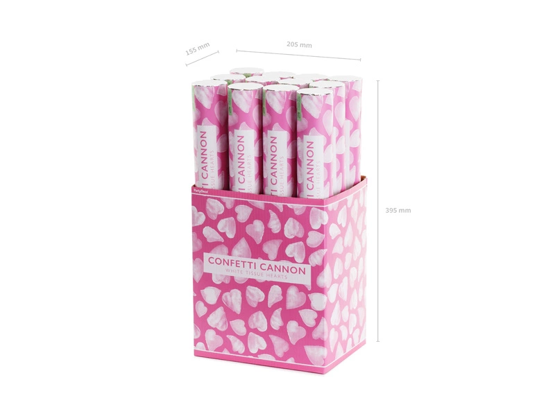 Wprowadź odrobinę magii i romantyzmu na swoją imprezę dzięki tubie strzelającej bibułowymi sercami w kolorze białym. To idealne rozwiązanie na wesela, wieczory panieńskie, walentynki i inne wyjątkowe okazje. Tuba o długości 40 cm zapewni spektakularny efekt, który zachwyci Twoich gości.