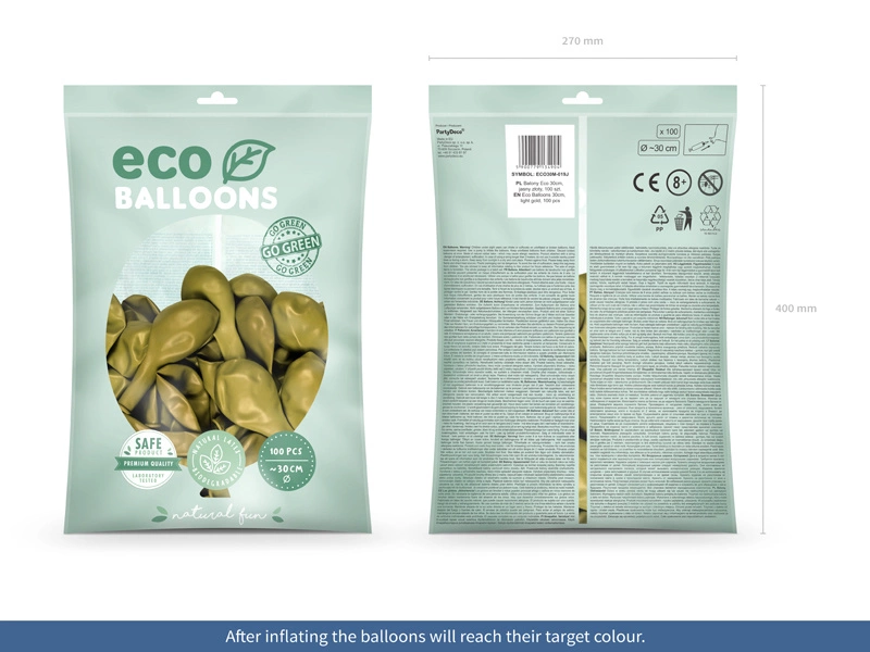 - Balony Eco metalizowane w kolorze jasnozłotym, średnica ok. 30 cm. (1 op. / 100 szt.)
