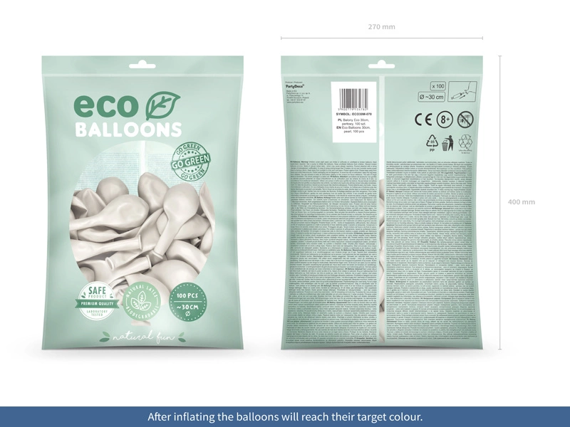 - Balony Eco metalizowane w kolorze perłowym, średnica ok. 30 cm. (1 op. / 100 szt.)