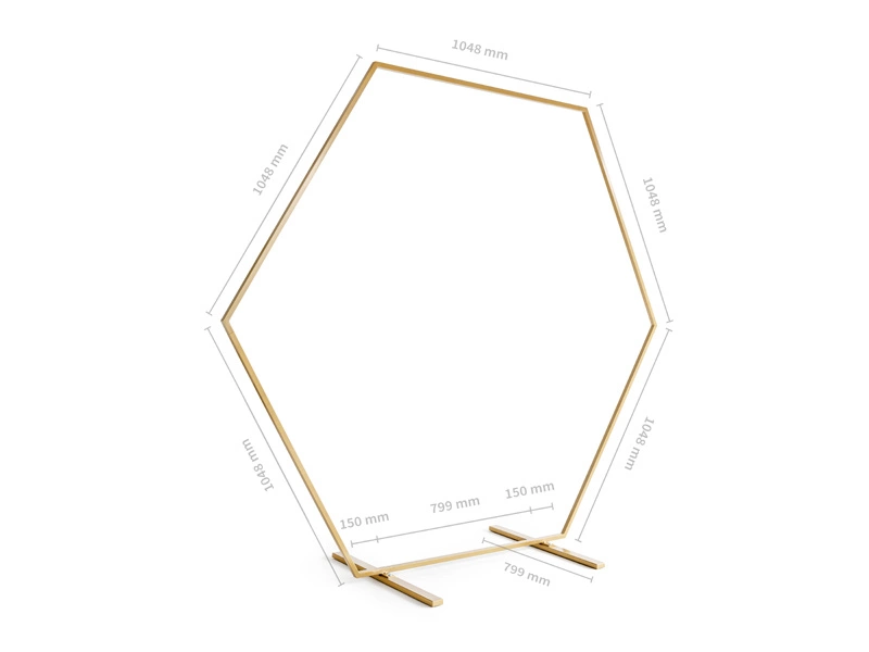 Wprowadź odrobinę luksusu i wyrafinowania na każdą imprezę z naszym złotym stojakiem na tło w kształcie heksagonu. Doskonały wybór na wesela, wieczory panieńskie, urodziny, Halloween, baby shower, Boże Narodzenie, Walentynki i inne wyjątkowe okazje. Stojak jest prosty w montażu i demontażu, co sprawia, że jest idealny do wielokrotnego użytku.