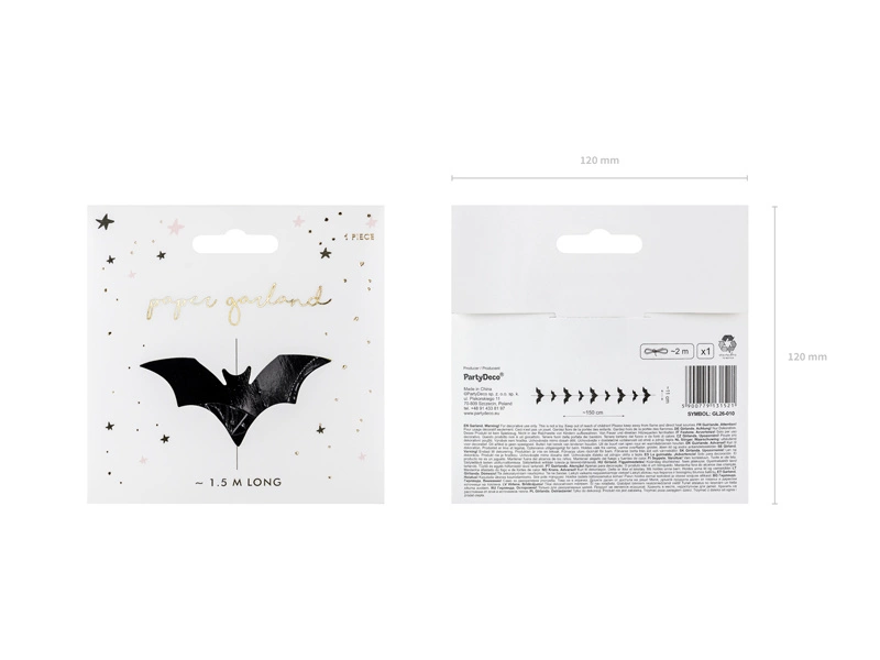 Wprowadź odrobinę tajemniczości na swoją imprezę z naszą stylową girlandą Nietoperze! Idealna na Halloween, wieczory tematyczne czy urodziny, ta czarna girlanda z pewnością przyciągnie uwagę i stworzy niezapomnianą atmosferę. Wykonana z papieru, ma długość około 1.5 metra i szerokość około 11 cm, co czyni ją doskonałym dodatkiem do każdej dekoracji.