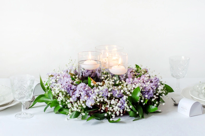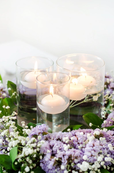 - Umieść świece w szklanych misach z wodą i płatkami kwiatów, aby stworzyć elegancką dekorację stołu.