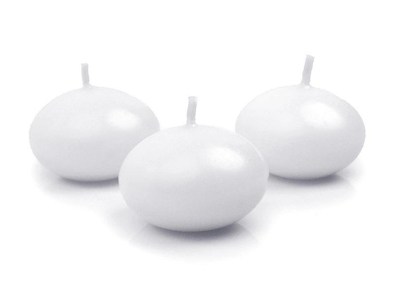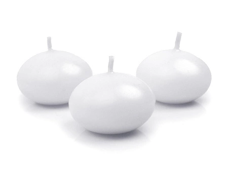 - Świeca pływająca Dysk, matowa, w kolorze białym, rozmiar 4 centymetry. Czas palenia 1 sztuki około 2 godzin. (1 op. / 50 szt.)