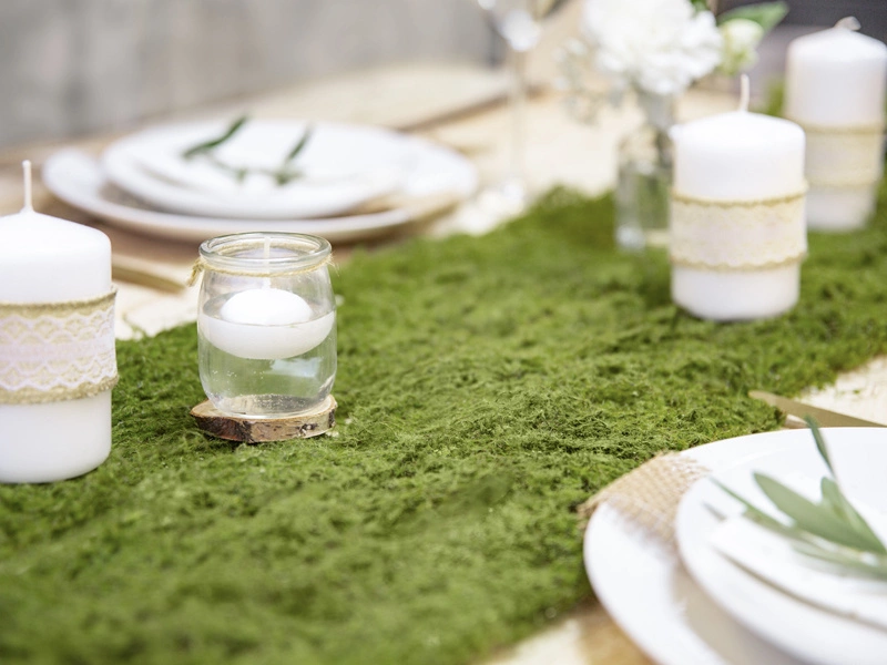 - Umieść świece w szklanych misach z wodą i płatkami kwiatów, aby stworzyć romantyczny stół na weselu.