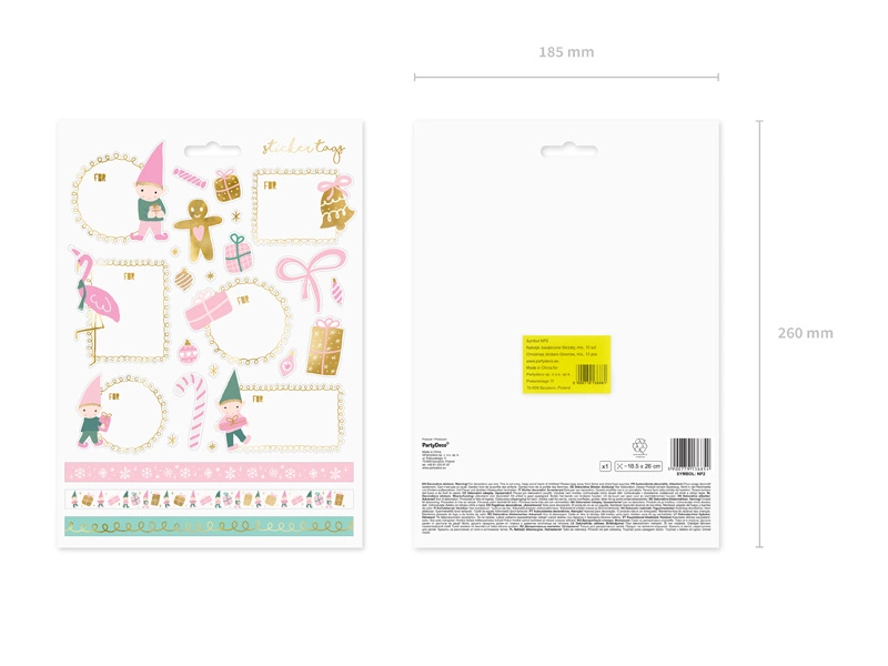- Naklejki świąteczne, mix wzorów i kolorów, zestaw zawiera 26 naklejek na blistrze, wymiary ok. 5.5-8 x 4.5-7.5 cm.