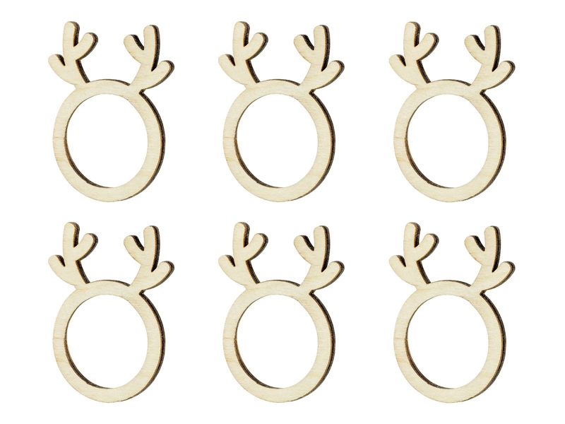 Drewniane obrączki na serwetki Renifery, naturalne drewno (1 op. / 6 szt.)