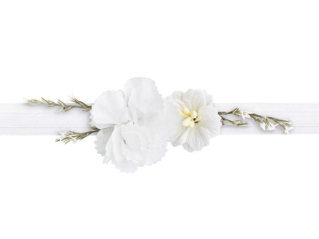- Korsaż na rękę z kwiatami w kolorze białym.