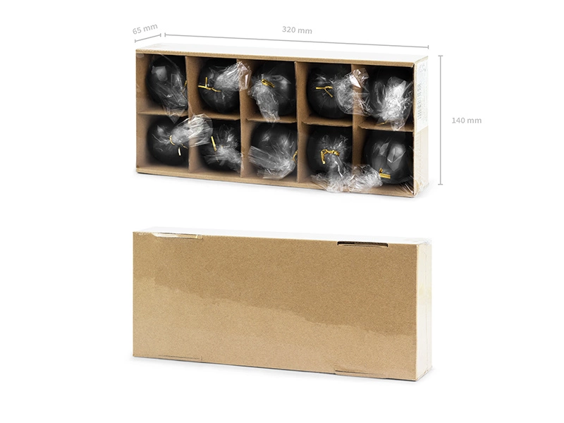- Świeca metalizowana Kula w kolorze czarnym, średnica 6 centymetrów. Czas palenia 1 sztuki około 8 godzin. (1 op. / 10 szt.)