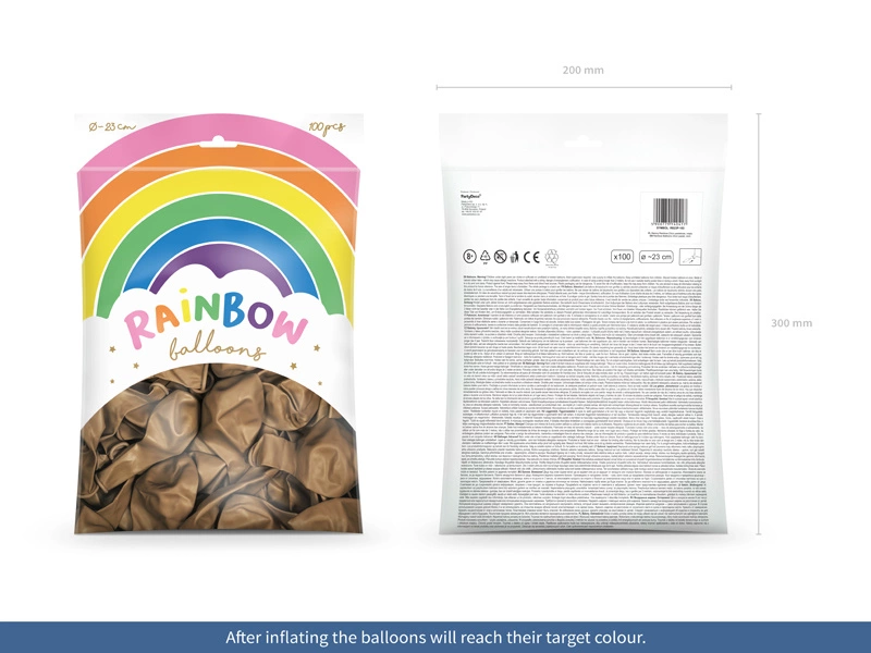 - Balony Rainbow metalizowane w kolorze złotym, średnica ok. 23 cm. (1 op. / 100 szt.)