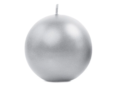 - Świeca metalizowana Kula w kolorze srebrnym, średnica 8 centymetrów. Czas palenia 1 sztuki około 20 godzin. (1 op. / 6 szt.)