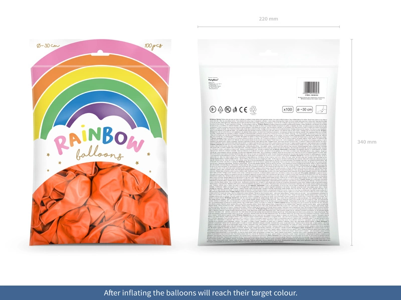 - Balony Rainbow metalizowane w kolorze pomarańczowym, średnica ok. 30 cm. (1 op. / 100 szt.)