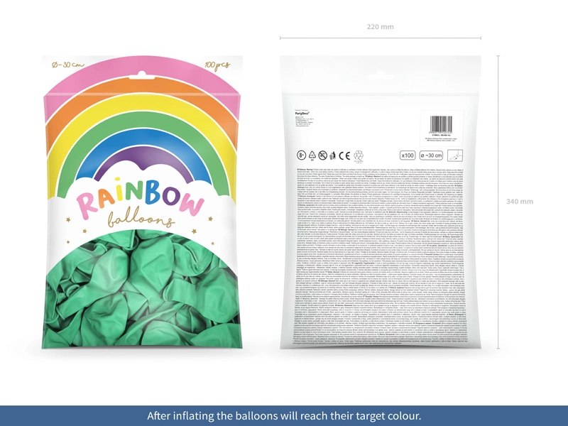 - Balony Rainbow metalizowane w kolorze miętowym, średnica ok. 30 cm. (1 op. / 100 szt.)