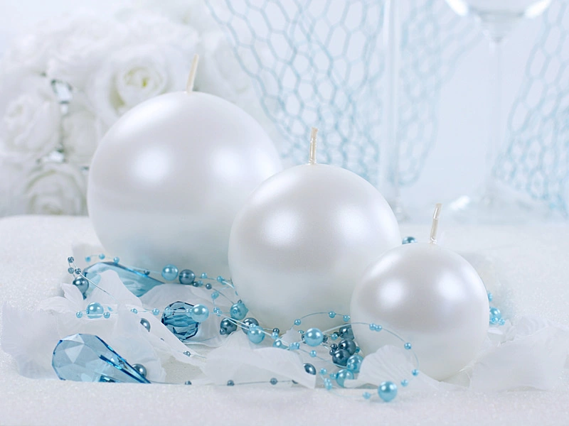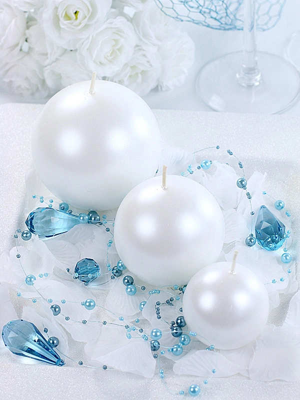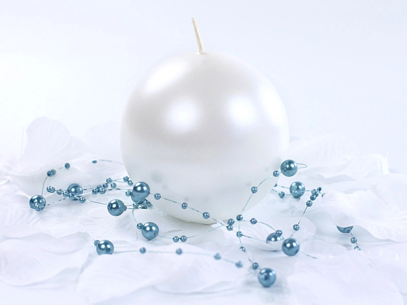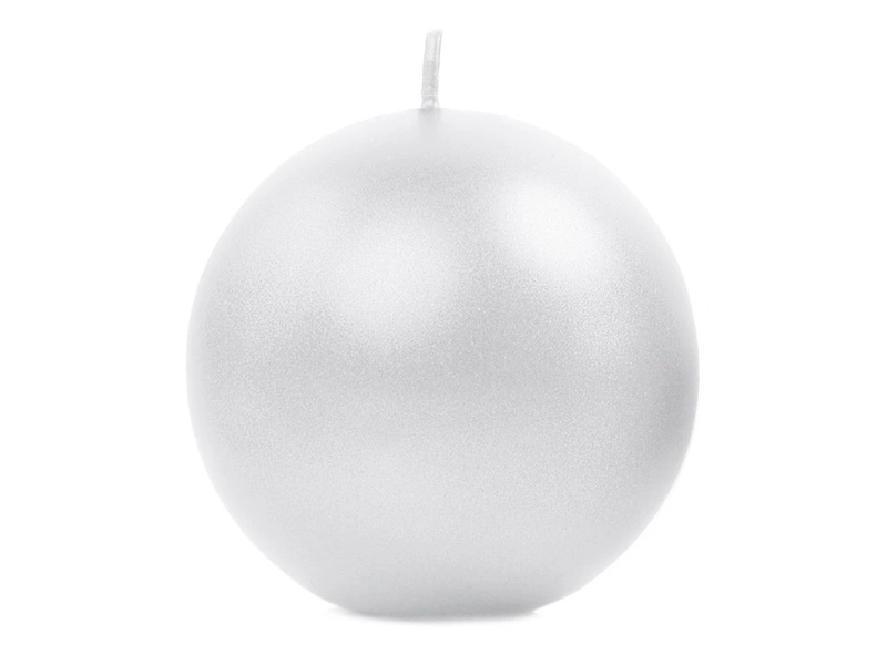 - Świeca metalizowana Kula w kolorze perłowym, średnica 8 centymetrów. Czas palenia 1 sztuki około 20 godzin. (1 op. / 6 szt.)