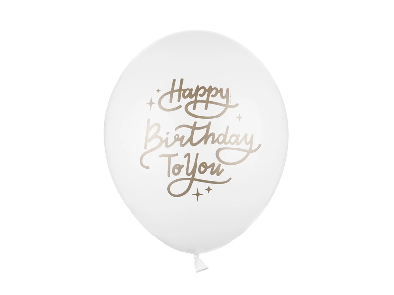 - Balony Strong Happy Birthday To You w kolorze Pastel Pure White ze złotym nadrukiem, średnica ok. 30 cm. (1 op. / 50 szt.)