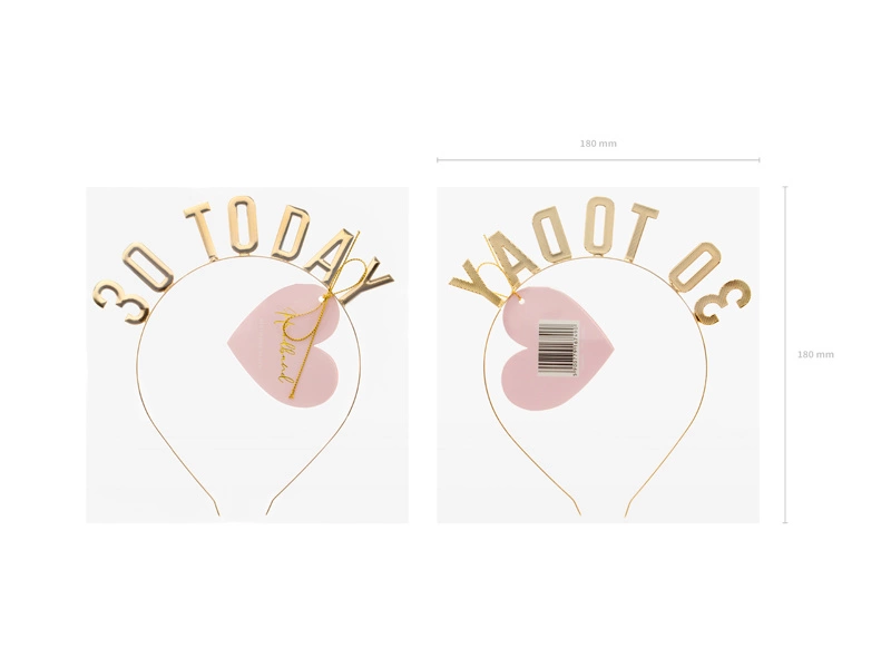 - Metalowa opaska z napisem 30 Today w kolorze złotym.