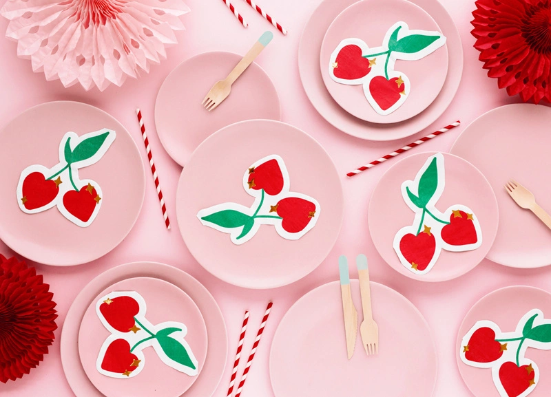- Użyj serwetek Wiśnie jako elementu centralnego dekoracji stołu, układając je w elegancki sposób.