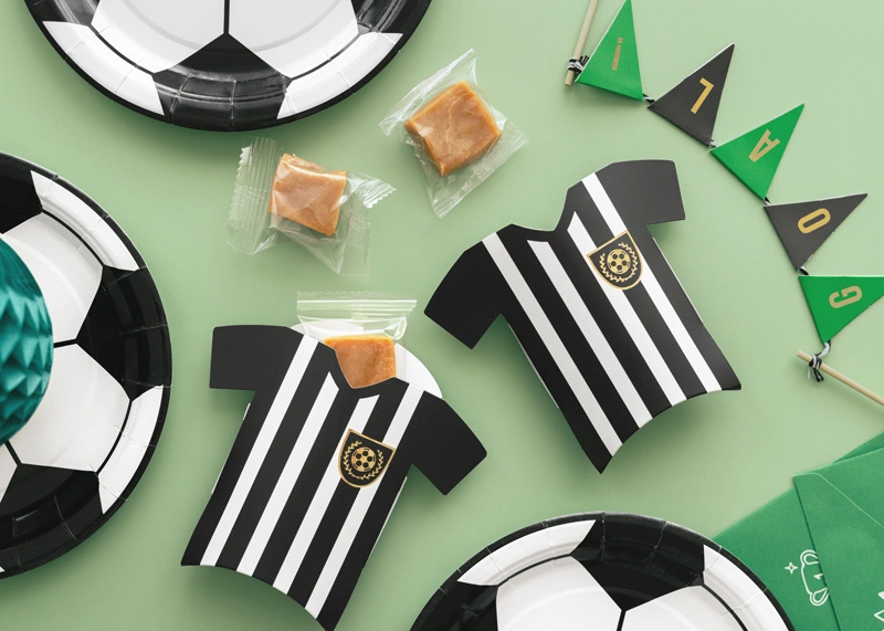 Wprowadź niepowtarzalny element do swojej imprezy dzięki pudełeczkom w kształcie koszulek piłkarskich! Doskonałe na różnorodne okazje, takie jak urodziny, wieczory panieńskie, baby shower czy wesela. Te urocze pudełeczka z pewnością zaskoczą Twoich gości i uczynią Twoje przyjęcie niezapomnianym.