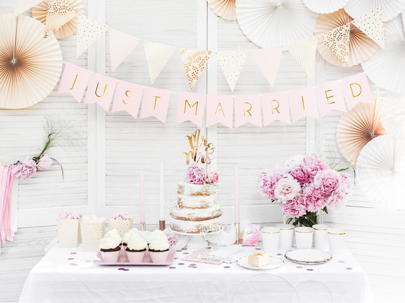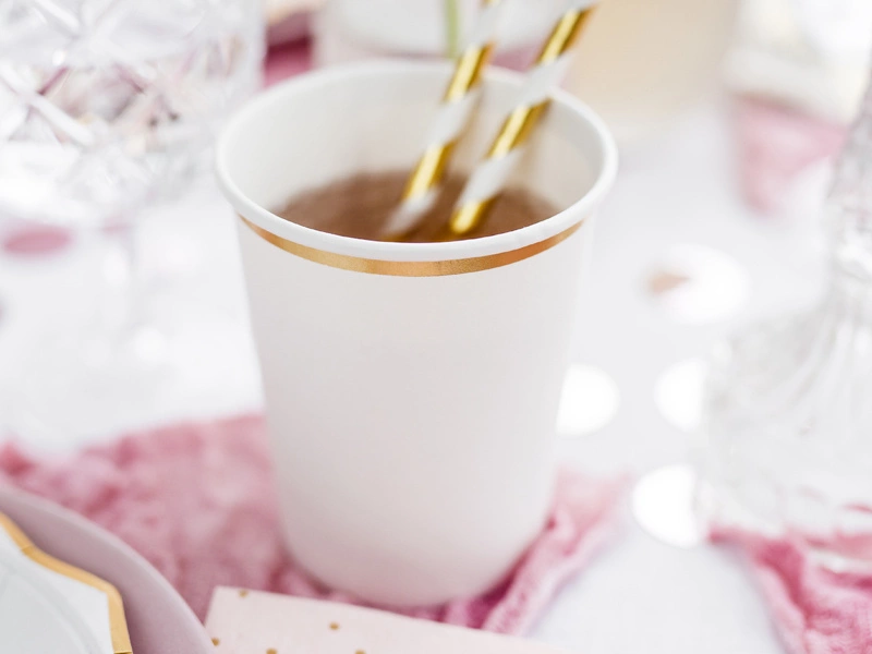 Pro Tip: Aby dodać jeszcze więcej elegancji, zestaw kubeczki z białymi serwetkami ze złotymi akcentami oraz złotymi sztućcami jednorazowymi.