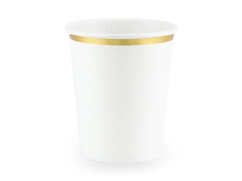 Kubeczki papierowe białe ze złotymi brzegami - 260 ml (1 op. / 6 szt.)