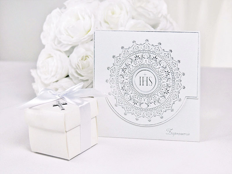 Jeśli szukasz eleganckiego sposobu na zaproszenie gości na uroczystość komunijną, zaproszenia komunijne w kolorze białym ze srebrnym ornamentem będą idealnym wyborem. W zestawie znajdziesz 10 zaproszeń wraz z kopertami, co ułatwi i przyspieszy przygotowania.