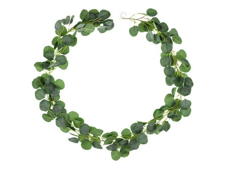 - Girlanda Eukaliptus w kolorze zielonym, ok. 150 liści, wysokość ok 12 cm, długość ok. 1.8 m.