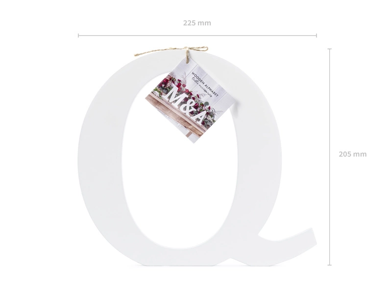 Wzbogać swoją imprezę o nutę elegancji i osobistego stylu dzięki drewnianej literze Q w kolorze białym. To doskonały wybór do dekoracji stołów, tworzenia napisów czy personalizowania przestrzeni na weselach, wieczorach panieńskich, urodzinach i innych wyjątkowych okazjach.