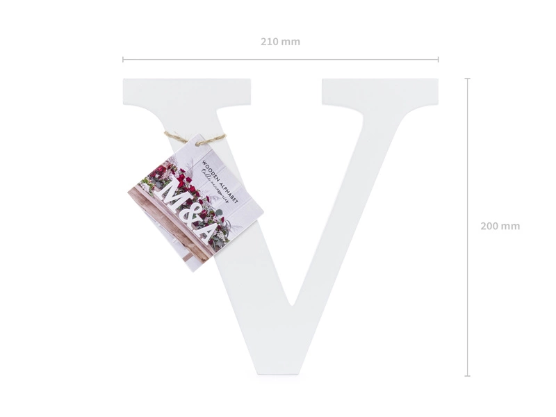 - Litera V wykonana z drewna w kolorze białym, szerokość ok. 21 cm, wysokość ok. 20 cm