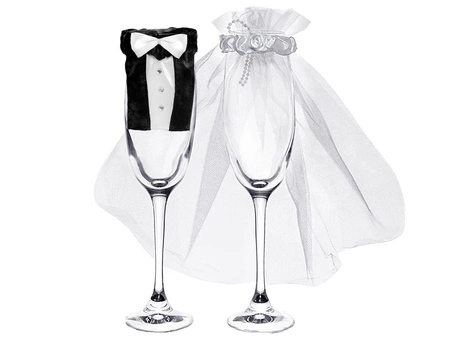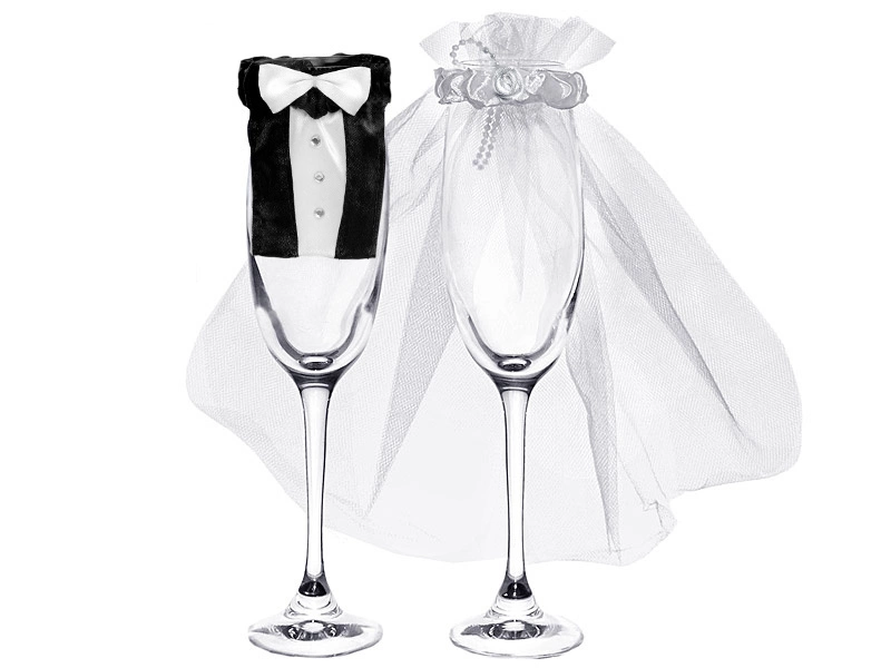 - Ubranka na kieliszki, zestaw strojów Pary Młodej.
