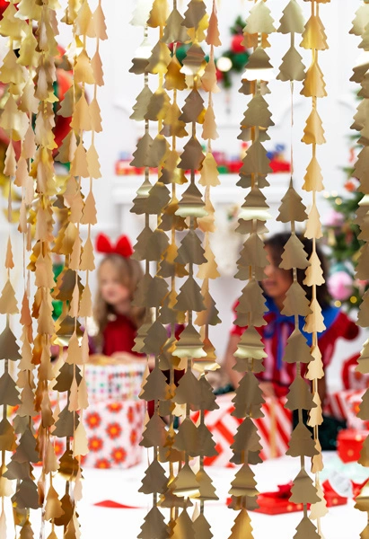 Pro Tip: Aby uzyskać jeszcze bardziej efektowny wygląd, dodaj do kurtyny światełka LED. Światło odbijające się od złotej folii stworzy magiczny efekt.