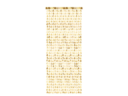 - Kurtyna - Choinki wykonana z folii w kolorze złotym, mocowana na taśmę dwustronną przyczepioną do girlandy, szerokść ok. 100 cm, długość ok. 245 cm.