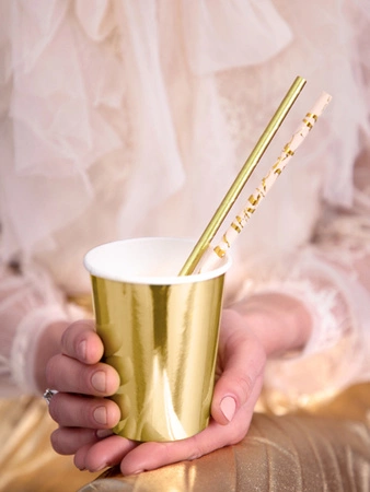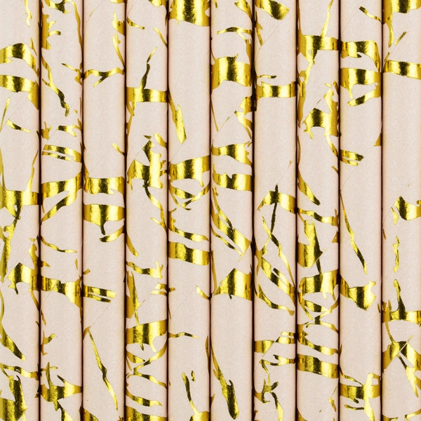Wprowadź odrobinę wyrafinowania do swojej imprezy dzięki naszym eleganckim słomkom papierowym w kolorze pudrowego różu z metalizowanym złotym wzorem typu marmur. Idealne na wesela, wieczory panieńskie, urodziny, baby shower i inne wyjątkowe okazje. Te stylowe słomki nie tylko zachwycają wyglądem, ale są również przyjazne dla środowiska.