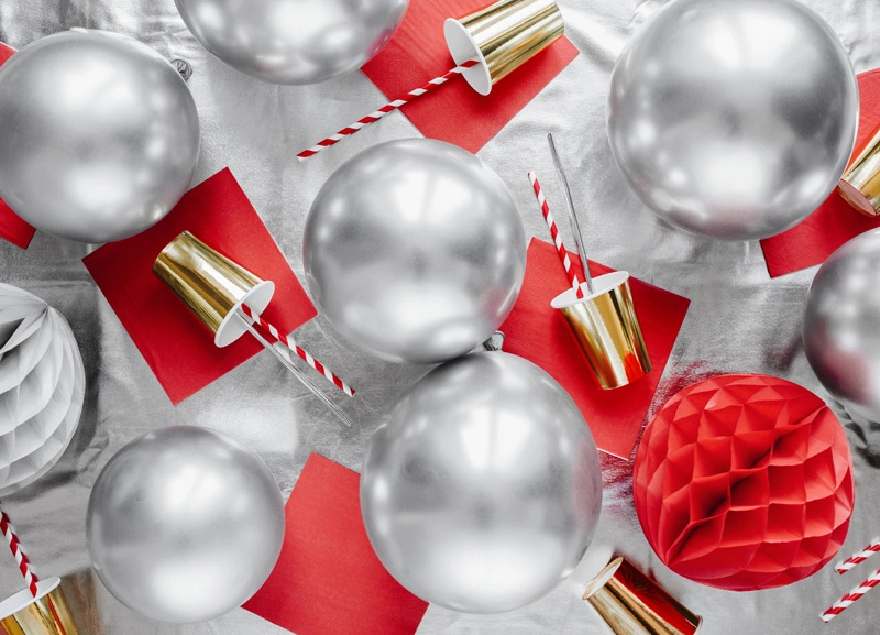 - Stwórz bukiety balonowe, łącząc srebrne balony z innymi kolorami, aby uzyskać efektowną dekorację.