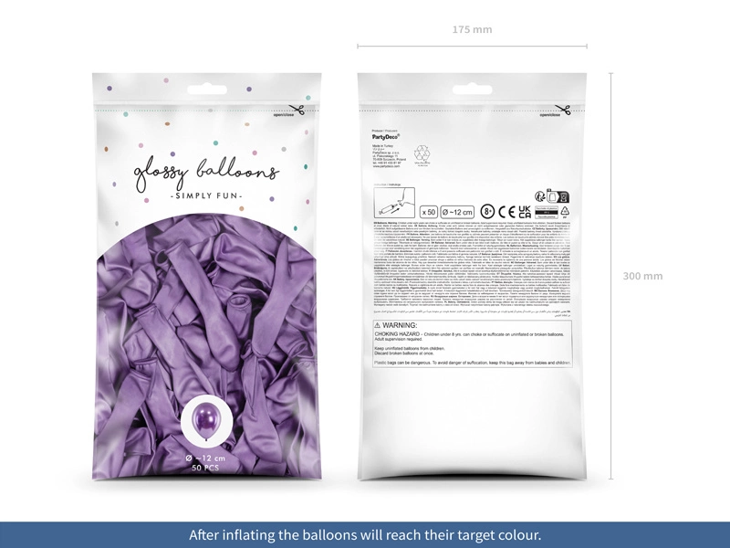 Wprowadź odrobinę magii na swoją imprezę z naszymi fioletowymi balonami Glossy! Te eleganckie balony o średnicy 12 cm są doskonałym dodatkiem na każdą okazję – od wesel, przez wieczory panieńskie, aż po urodziny i baby shower. W opakowaniu znajduje się 50 sztuk, co pozwala na stworzenie efektownych dekoracji.