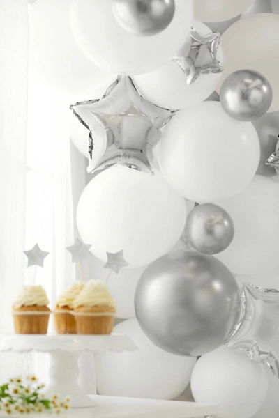 Rozświetl każdą uroczystość z naszymi srebrnymi balonami Glossy! Te stylowe balony o średnicy 12 cm to doskonały wybór na wesela, wieczory panieńskie, urodziny, Halloween, baby shower, Boże Narodzenie, Walentynki i wiele innych okazji. W jednym opakowaniu znajdziesz aż 50 sztuk, co umożliwia stworzenie spektakularnych dekoracji.