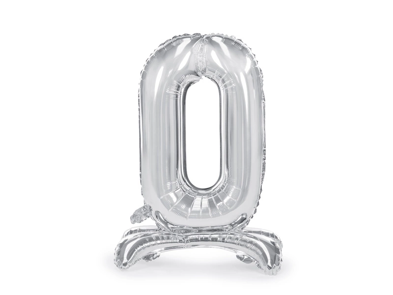 - Metalizowany stojący balon foliowy Cyfra ''0'' w kolorze srebrnym, rozmiar przed napompowaniem ok. 90 cm (35''), rozmiar po napompowaniu ok. 70 cm (27.5''). Do napomowania powietrzem.