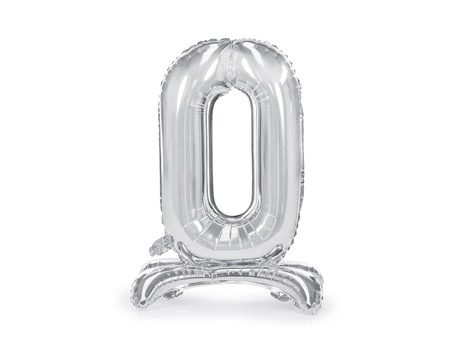 Stojący balon foliowy Cyfra "0", 70 cm, srebrny