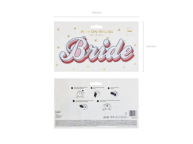 Chcesz dodać odrobinę magii do swojego wieczoru panieńskiego lub wesela? Naprasowanka "Bride" to idealne rozwiązanie! Ta elegancka dekoracja w mixie kolorów o wymiarach 22 x 8 cm sprawi, że każda przyszła panna młoda poczuje się wyjątkowo.