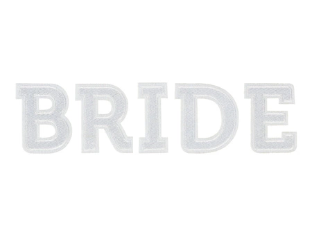 - Naprasowanka BRIDE w kolorze białym, wymiary ok. 24 x 6 cm.