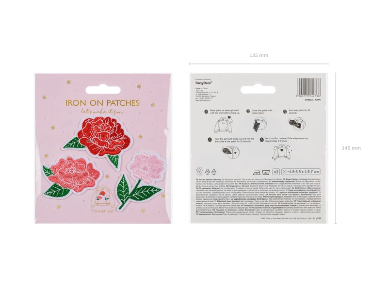 - Naprasowanki Kwiaty, mix kolorów, zestaw zawiera 3 wzory (po 1 sztuce z każdego wzoru), wymiary ok. 4.5-6.5 x 4.5-7 cm. (1 op. / 3 szt.)