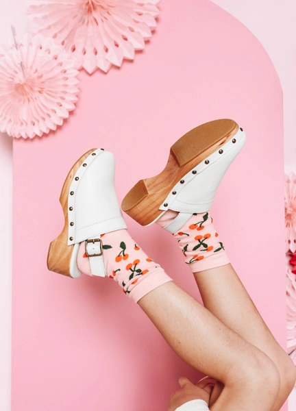 - Połącz skarpetki Wisienki z butami w neutralnych kolorach, aby skarpetki były głównym akcentem Twojej stylizacji.